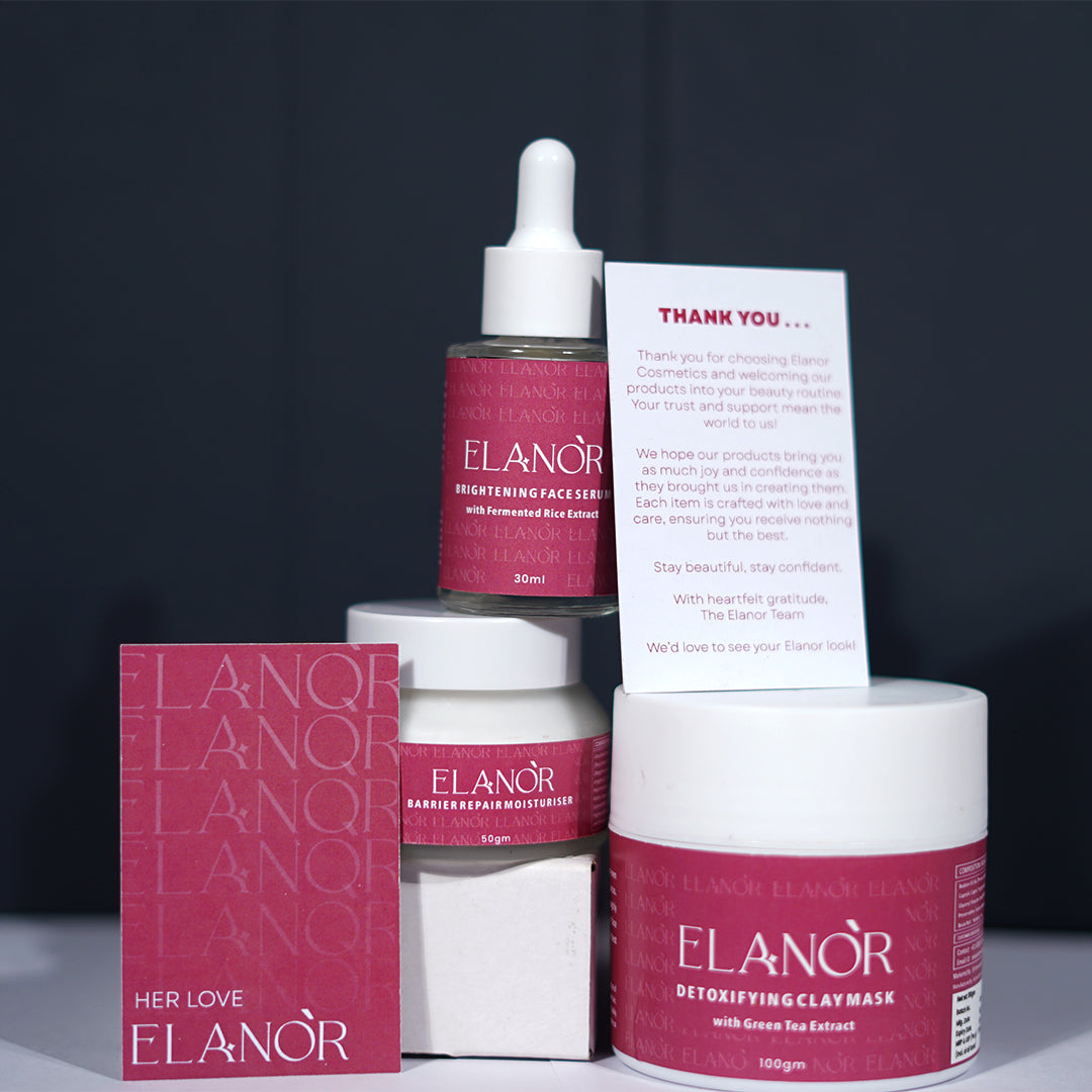 At Elanor, we combine the purity of nature with modern science to create skincare that not only enhances but nurtures. Each product is crafted with precision, delivering the luxury your skin deserves.”